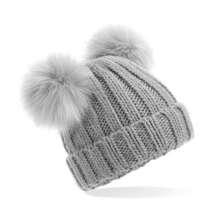 Junior Faux Fur Double Pom Pom Beanie